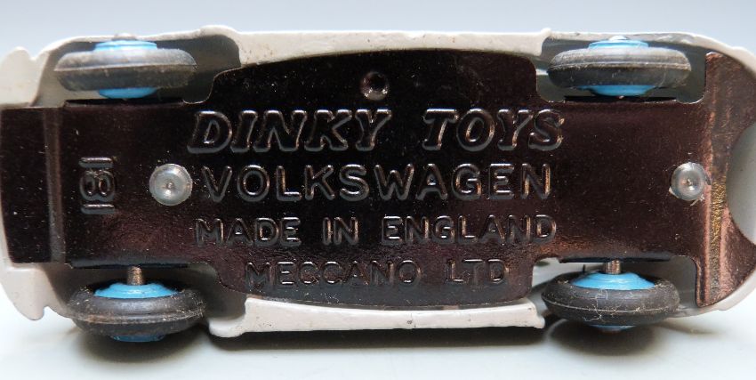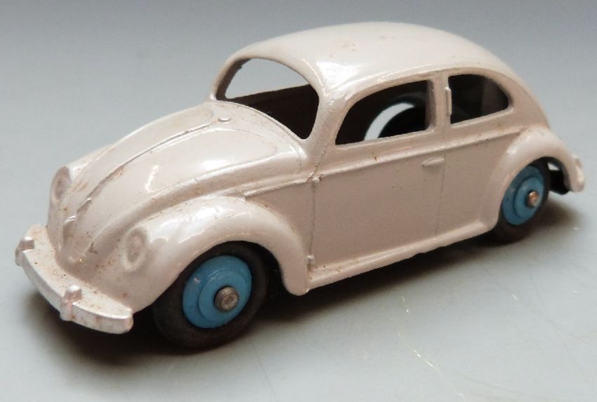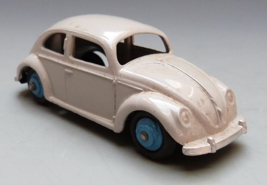 Dinky Toys diecast model Volkswagen with grey body and blue hubs, 181, in original box.