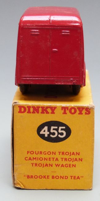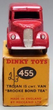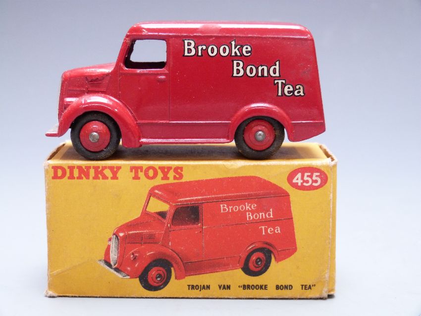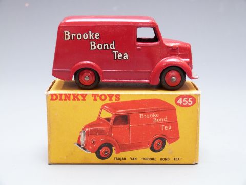 Dinky Toys diecast model Trojan Van Brooke Bond Tea with red body and hubs, 455, in original box.
