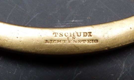 Continental early 19thC brass hilted short sword, blade 58cm, marked Tschudi in Lichtenstein to guard