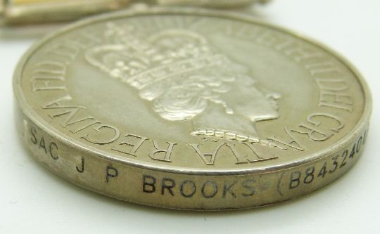 Royal Air Force Iraq Medal with clasp for 19 Mar to 28 Apr 2003, named to B8432401 Sac J P Brooks, RAF, with box