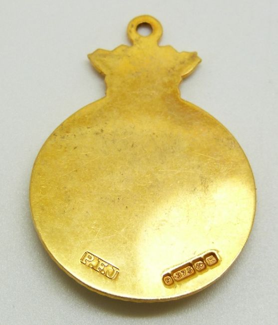 A 9ct gold and enamel RN & RMFA Inter-port Cup football medal, 7.1g