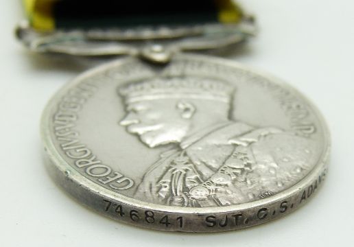 British Army Territorial Efficiency Medal (George V) named to 746841 Sgt C S Adams, Royal Artillery