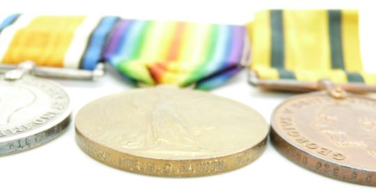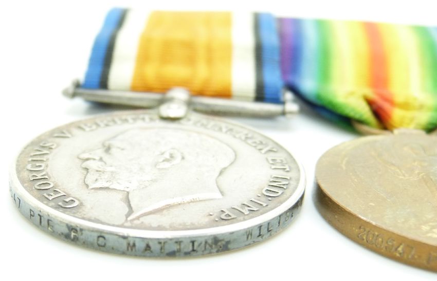 British Army WWI medals comprising War Medal and Victory Medal and Territorial Force War Medal named to 2096 Pte R C Mattin, Wiltshire Regiment