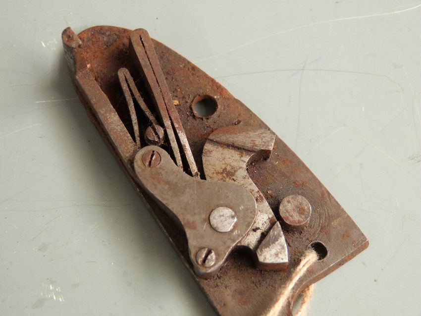 Three pairs of gun locks, all with engraved decoration, each approximately 11cm long.