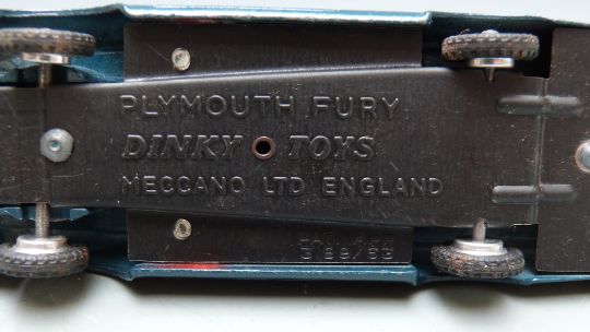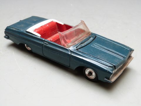 Dinky Toys diecast model Plymouth Fury Convertible with blue body, white hood and red interior, 137, in original box.