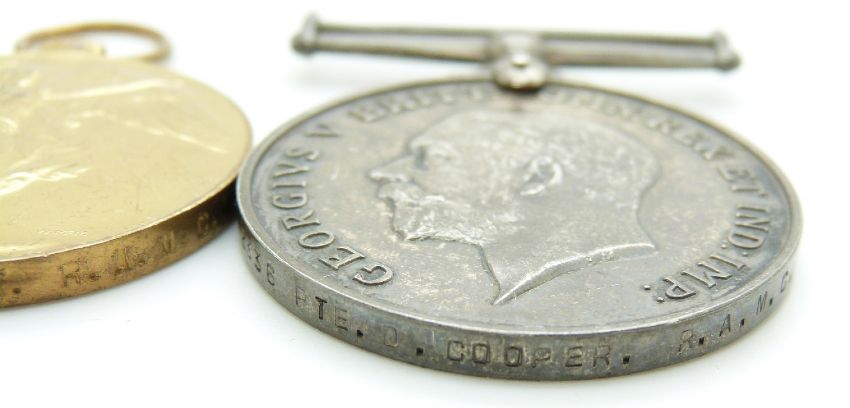 British Army WWI medals comprising 1914/1915 Star, War Medal and Victory Medal named to 2336 Pte D Cooper, Royal Army Medical Corps