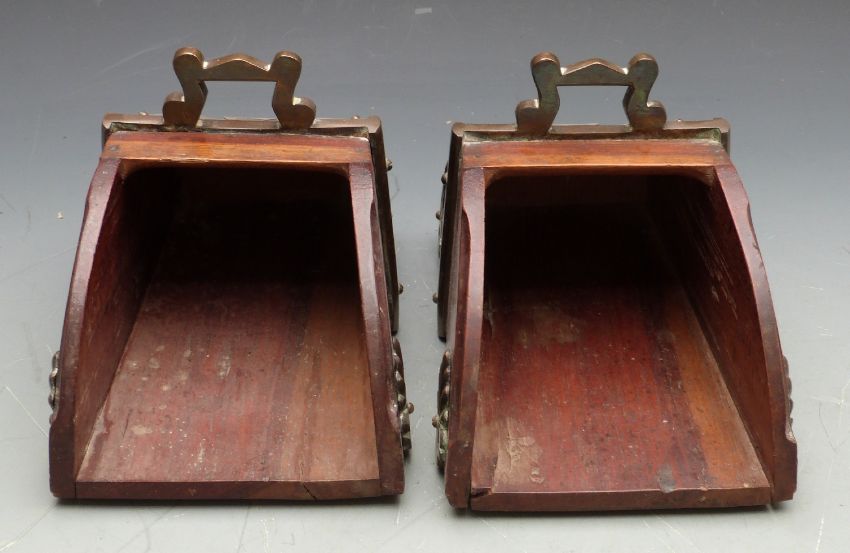 Gaucho Argentinian or Spanish stirrups, brass mounted wooden bodies, length 24.5cm