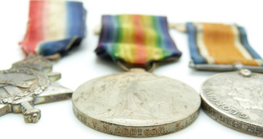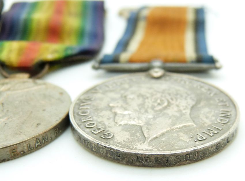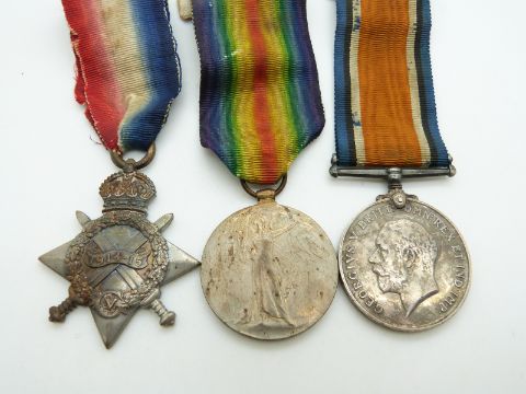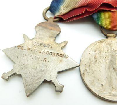 British Army WWI medals comprising 1914/1915 Star, War Medal and Victory Medal named to 1450 Pte V H Addison, East Lancashire Regiment
