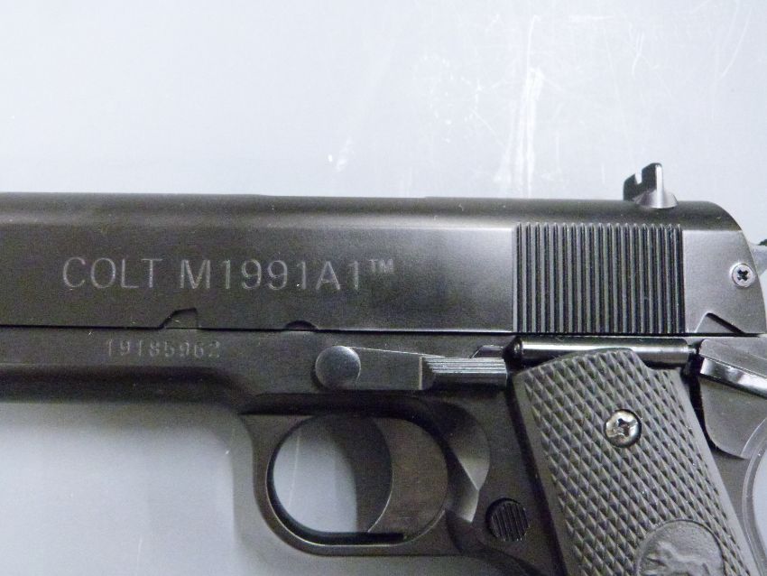 KWC Colt M1991A1 Series 80 6mm BB air soft pistol 180101, serial number 19185962, in original box with instructions.