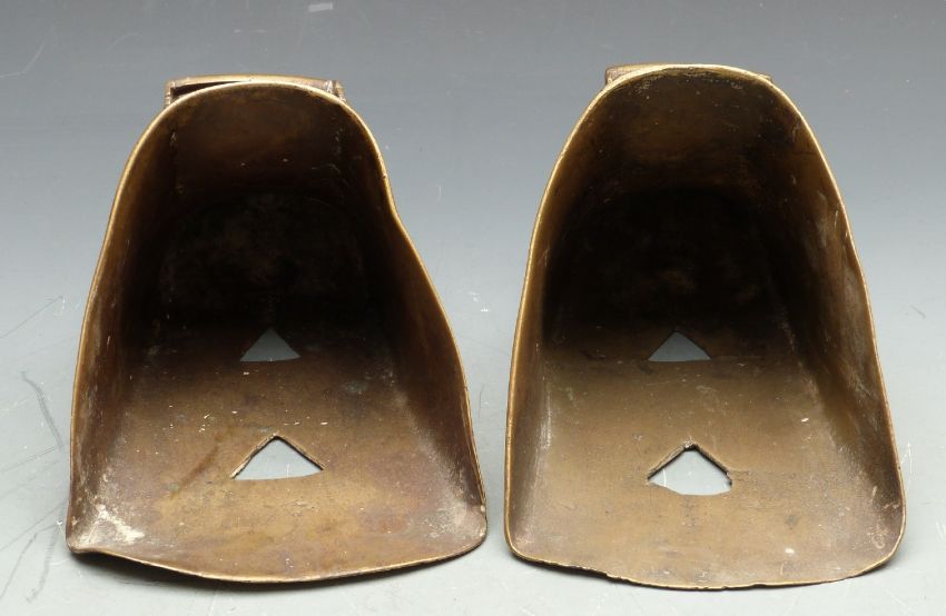 Gaucho Argentinian or Spanish stirrups, with cast brass or similar bodies, length 25cm