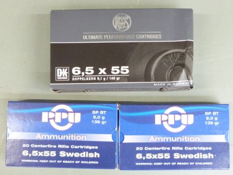 Forty0ne 6.5x55mm rifle cartridges, all in original boxes. PLEASE NOTE THAT A VALID RELEVANT FIREARMS/SHOTGUN CERTIFICATE IS REQUIRED TO HANDLE/PURCHASE THIS ITEM.