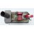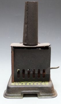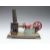 Bing horizontal hot air live steam engine with twin cylinders and flywheel, on painted metal base, 23cm long.