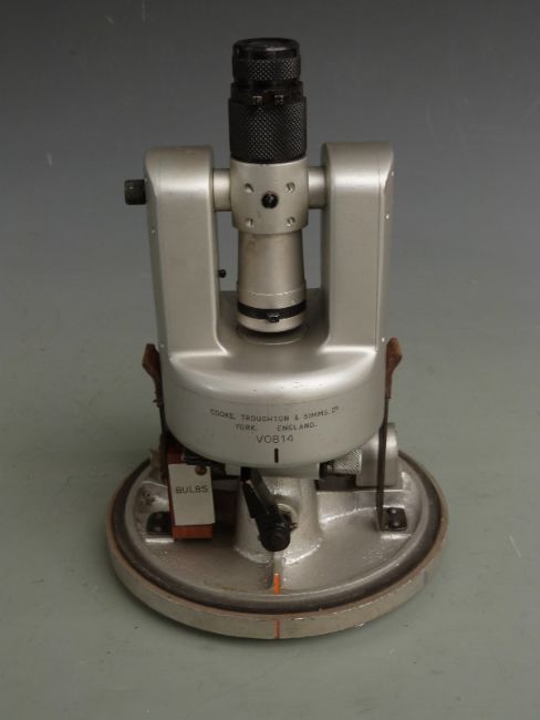 Cooke, Troughton & Simms Ltd vernier theodolite with mining dial torch, numbered to body V0814, with dome type cover