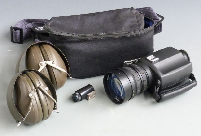 Zenit NV-100 night vision spotting scope in original carry case together with two pairs of ear defenders.