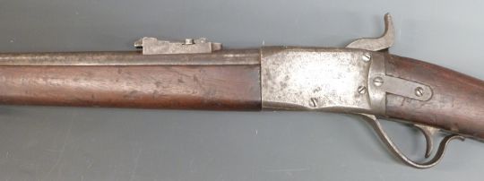 Peabody Martini action Egyptian .43 percussion hammer action carbine rifle with pop-up ladder sights, sling suspension mounts, steel ram-rod, lock stamped 'Peabody's Pat July 22 1862 Manf'D by Providence Tool Co Prov RI' and 22.5 inch barrel, overall length 104cm.