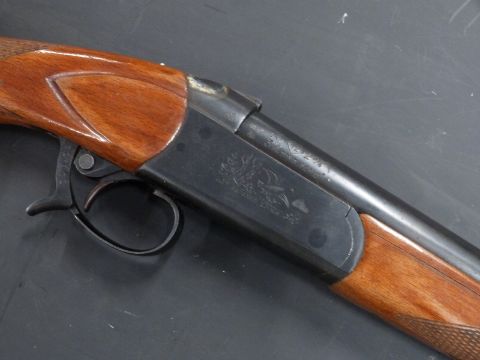 Baikal model IJ-18 12 bore single barrelled shotgun with engraved lock, chequered semi-pistol grip and forend and 29 inch barrel, overall length 116cm, serial number E07110. PLEASE NOTE THAT A VALID RELEVANT FIREARMS/SHOTGUN CERTIFICATE IS REQUIRED TO HANDLE/PURCHASE THIS ITEM.