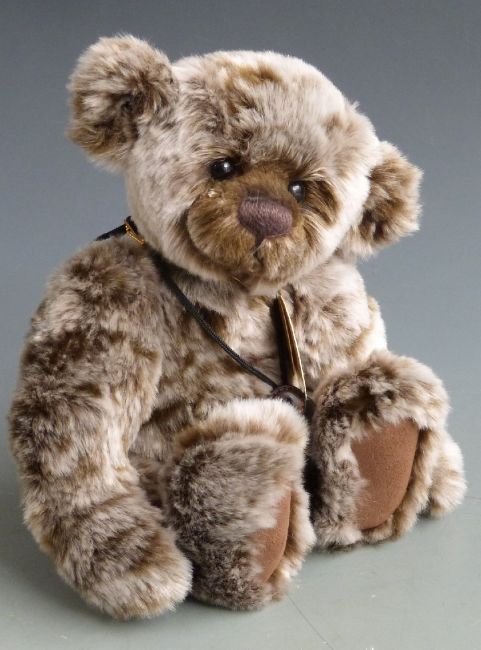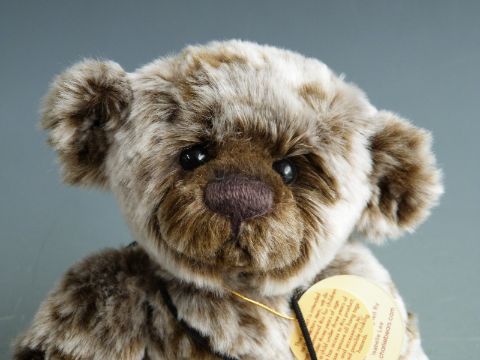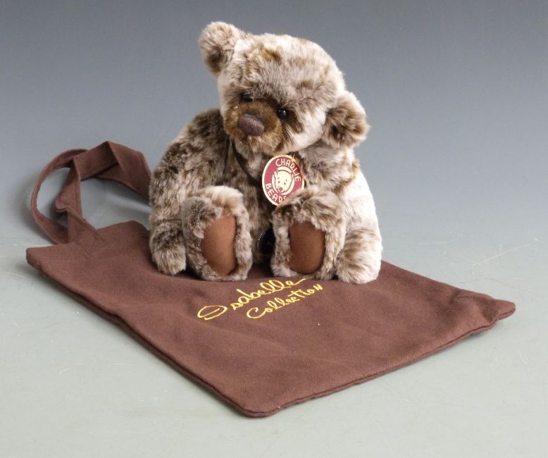 Charlie Bears Teddy bear Jooles with brown tipped mohair, 26cm tall, in Isabelle Collection cloth bag.
