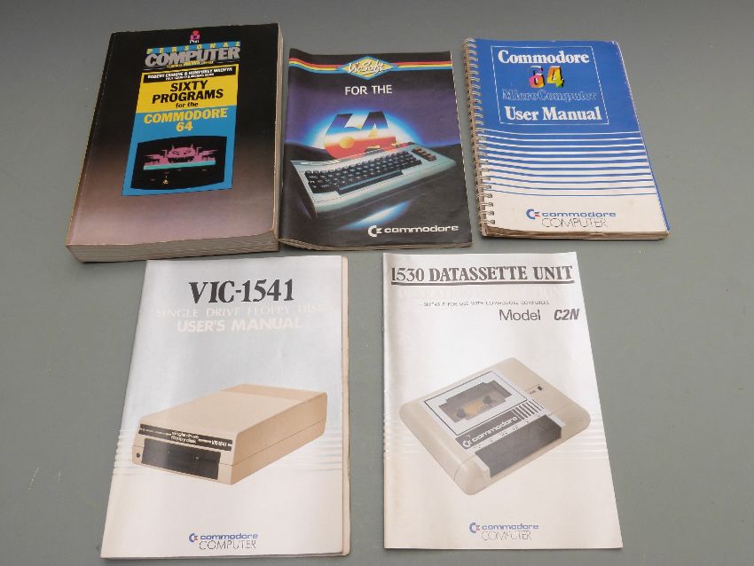 Commodore 64 personal computer with Datassette Unit, VIC1541 disk drive and two joysticks, some in original packaging