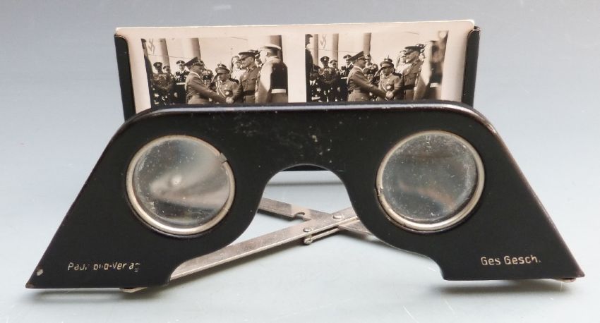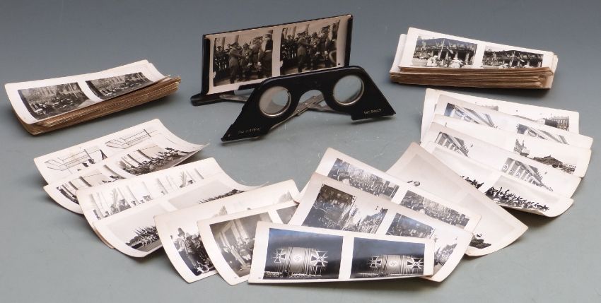 Nazi German interest stereoscopic cards titled Der Erste Großdeutsche Reichskriegertag including Hitler and viewer