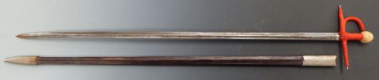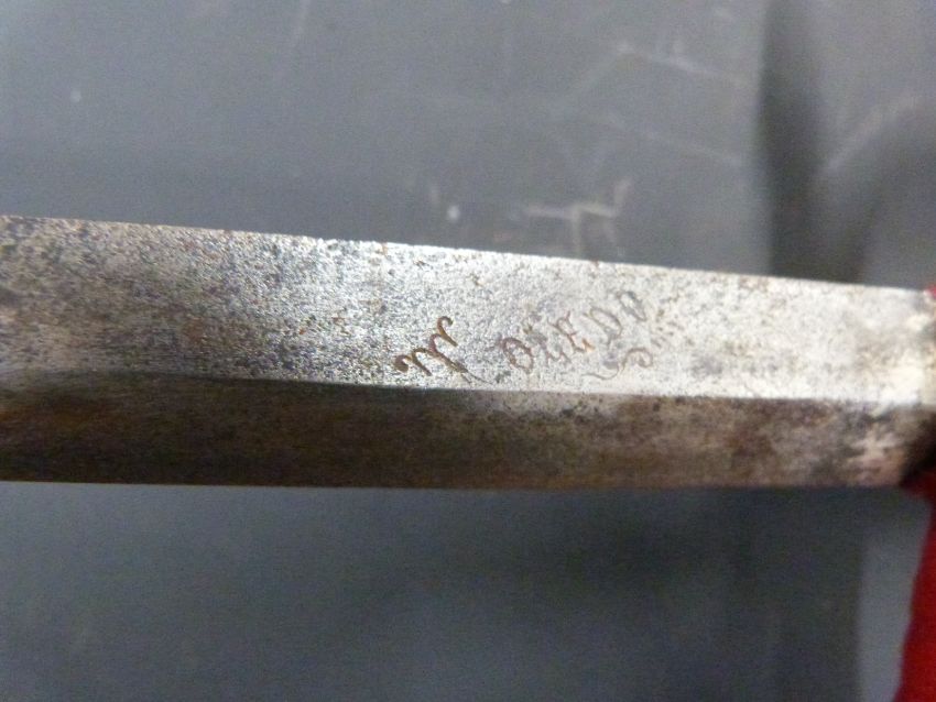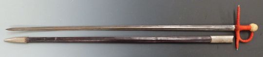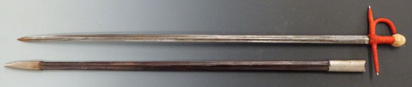 Late 19thC / early 20thC Toledo steel sword with leather scabbard, blade length 85cm