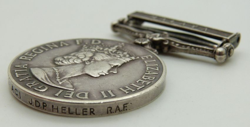 Royal Air Force General Service Medal with clasp for Malaya, named to 5035732 JDP Heller, RAF