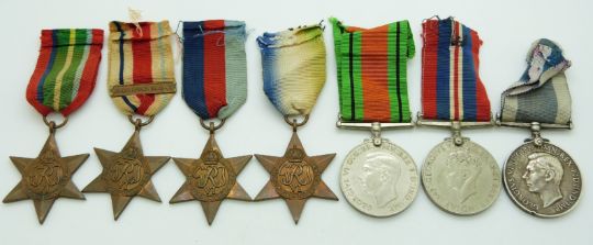 Royal Navy WWII medals comprising 1939/1945 Star, Africa Star with clasp for North Africa 1942-43, Atlantic Star, Pacific Star, Defence Medal, War Medal and Good Conduct & Long Service Medal named to 60586 H C Craft, HMS Nelson
