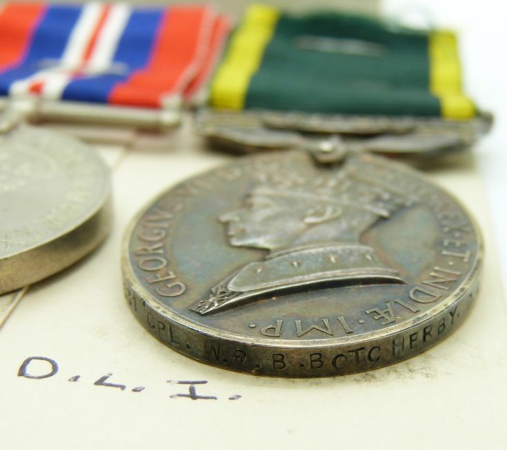 British Army WWII medals comprising 1939/1945 Star, Italy Star, Defence Medal, War Medal and Territorial Efficiency Medal named to 4451531 Cpl W B B Botcherby, Durham Light Infantry