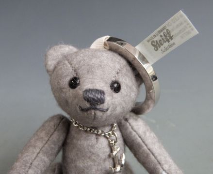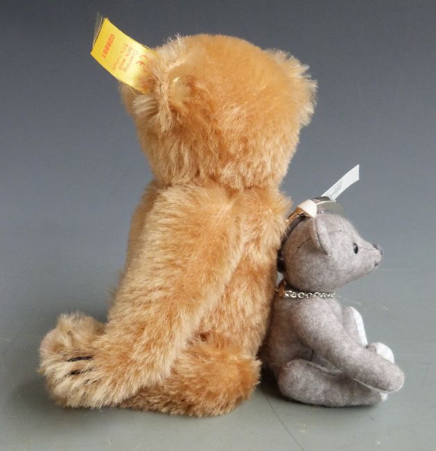 Two Steiff Teddy bears Classic 1906 with blonde mohair, 19cm tall and felt Teddy Bear keyring, 10cm tall, limited edition 770 of 2000, both in original boxes.