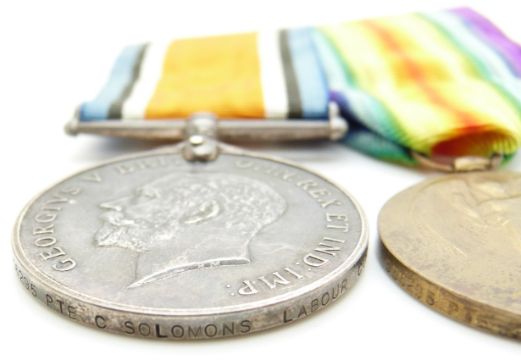 British Army WWI medals comprising War Medal and Victory Medal named to 556295 Pte C Solomons, Labour Corps