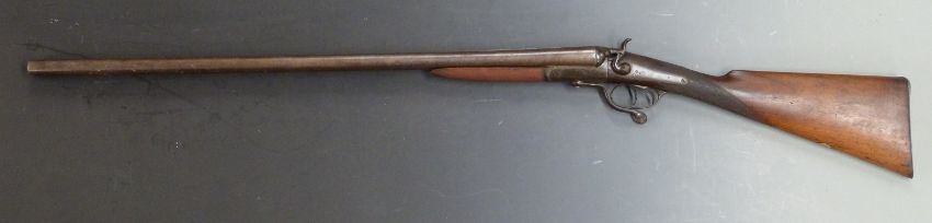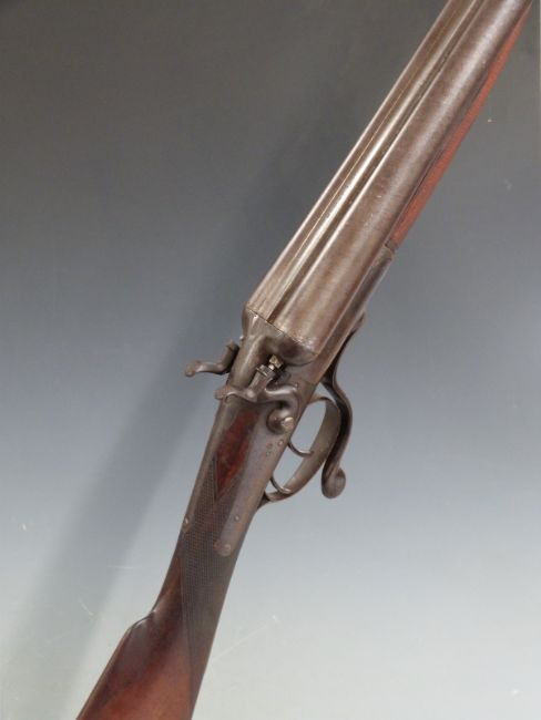 Webley 12 bore side by side hammer action shotgun with chequered grip and forend, rotary underlever, vacant cartouche to the underside of the stock and named 30 inch Damascus barrels, overall length 118cm, serial number 44836. PLEASE NOTE THIS LOT IS BEING SOLD AS STOCK AND ACTION ONLY AND THAT A VALID RELEVANT FIREARMS/SHOTGUN CERTIFICATE IS REQUIRED TO HANDLE/PURCHASE THIS ITEM.