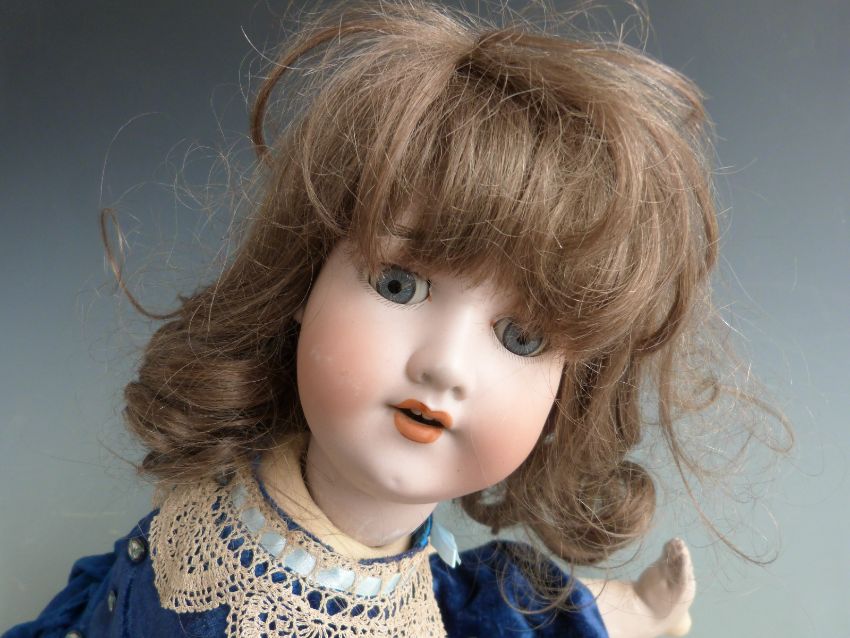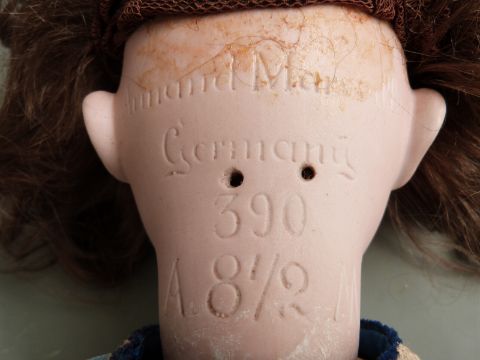 Armand Marseille bisque headed doll with open mouth, weighted blue eyes, brown hair and articulated composite body, marked to the back of the neck 'Armand Marseille Germany 390 A 8½ M', 68cm tall.