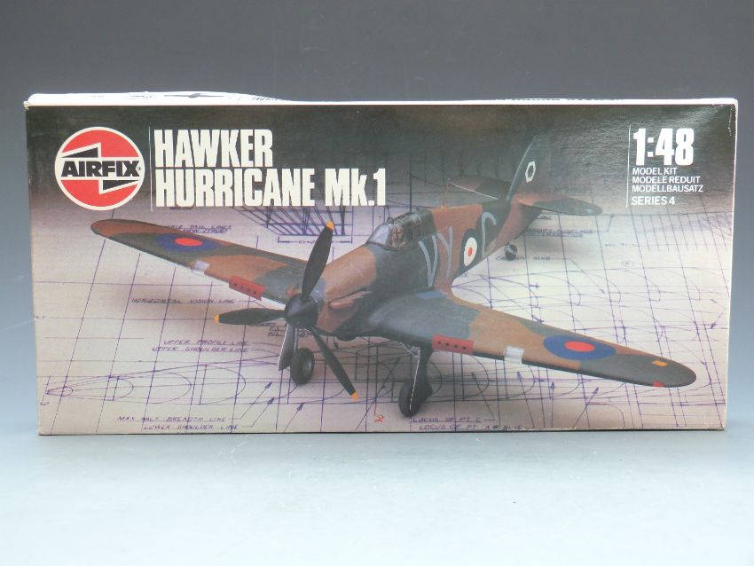 Five Airfix, Revell and Tamiya model kits comprising Premier Collection 1:72 scale Avro Lancaster BIII Special 'Dambuster' 98004, 1:144 scale Concorde 04257, 1:48 scale Hurricane Mk.I 04102, 1:35 scale British Army 6 Pounder Anti-tank Gun MM105-300 and 1:35 scale British Army Infantry MM-107, all in original boxes.