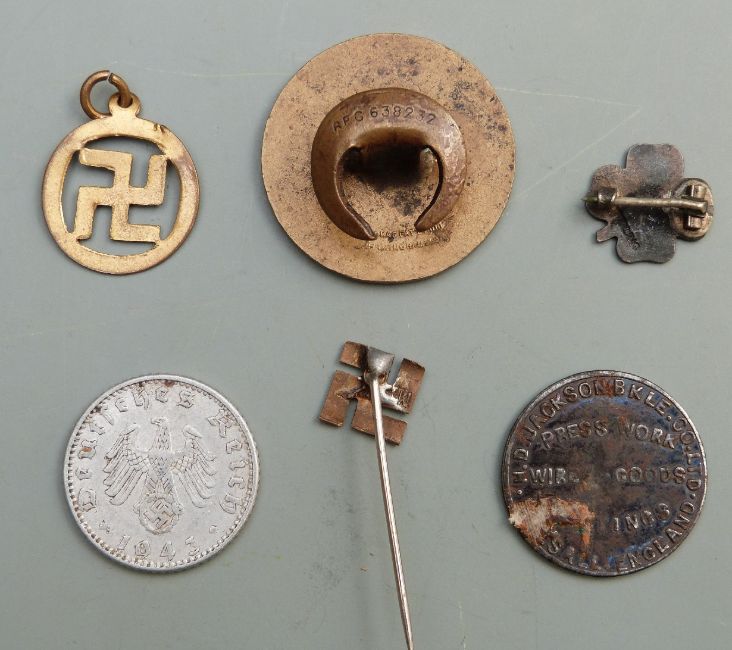 A quantity of swastika badges including National War Savings Committee