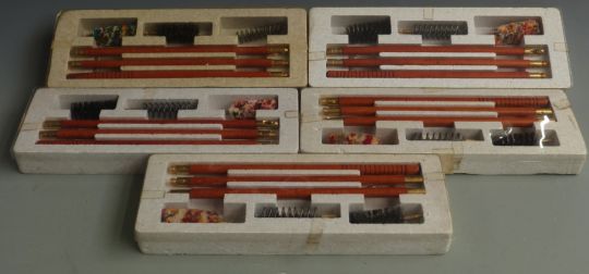 Five 12 bore shotgun cleaning kits, all in original packaging.
