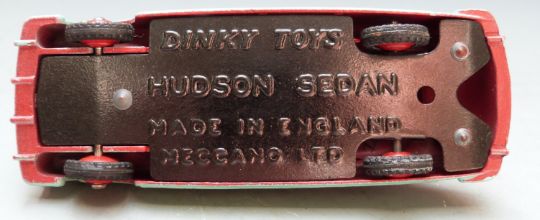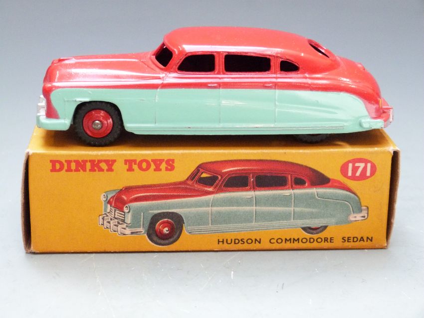 Dinky Toys diecast model Hudson Commodore Sedan with red and mint green body and red hubs, 171, in original box.