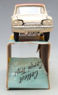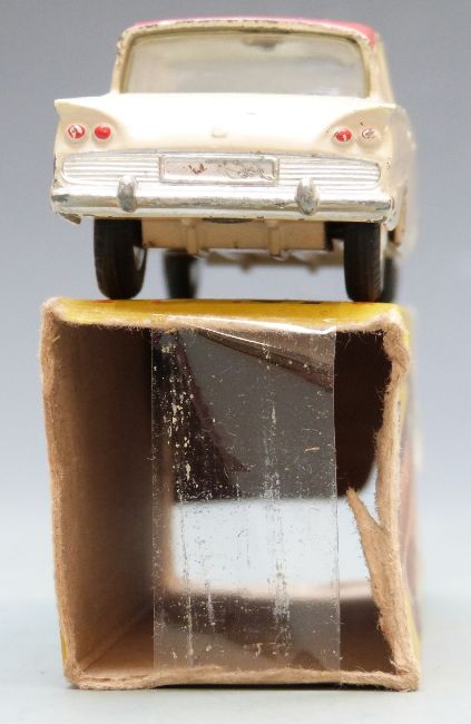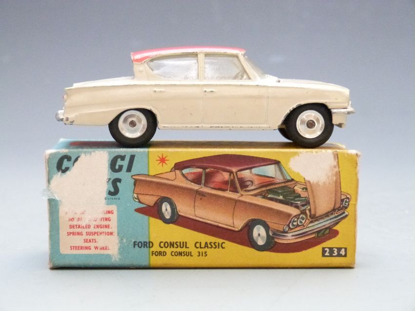 Corgi Toys diecast model Ford Consul Classic 315 with beige body, pink roof and lemon interior, 234, in original box.