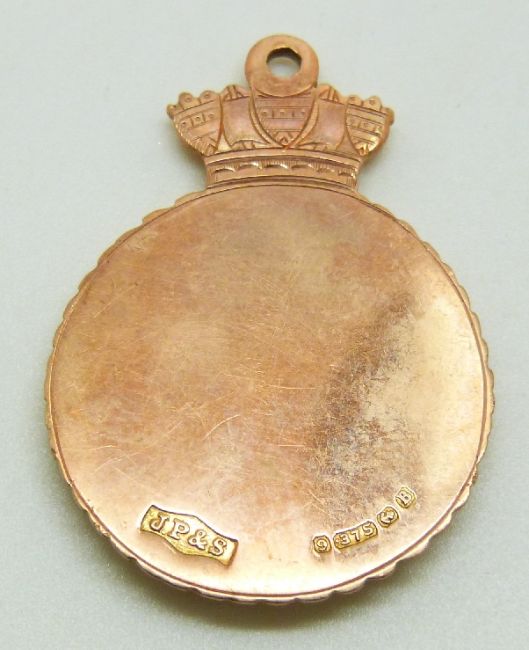 A 9ct gold and enamel RN & RMFA Inter-port Cup football medal, 9.4g