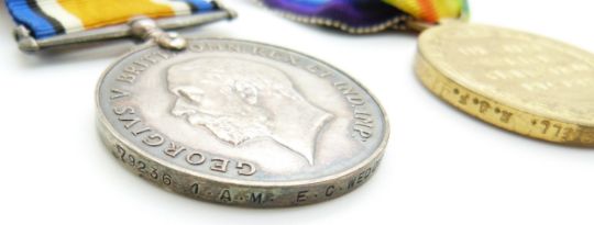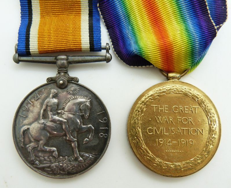Royal Air Force WWI medals comprising two pairs of War and Victory Medals named to 26801 Cpl H P Camburn, RAF and 79236 E C Weddell, RAF, with boxes
