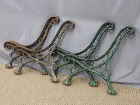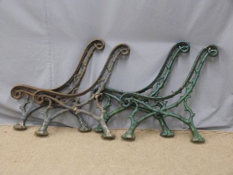 Four matching cast iron garden bench supports of naturalistic twig or branch design