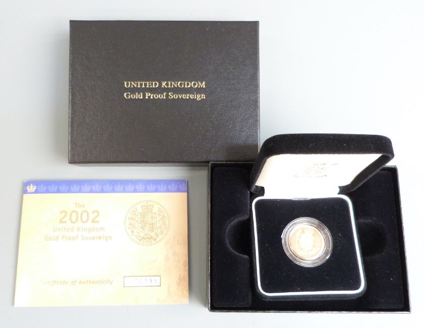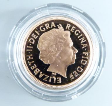 2002 Queen's Jubilee proof gold full sovereign with shield back, cased with certificate no. 10195