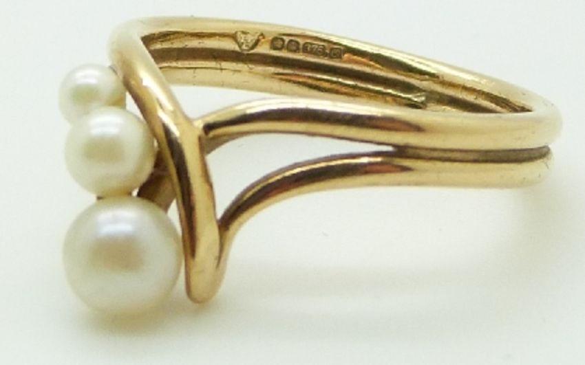 A 9ct gold ring set with pearls and a 9ct gold eternity ring set with opals, 5.2g,