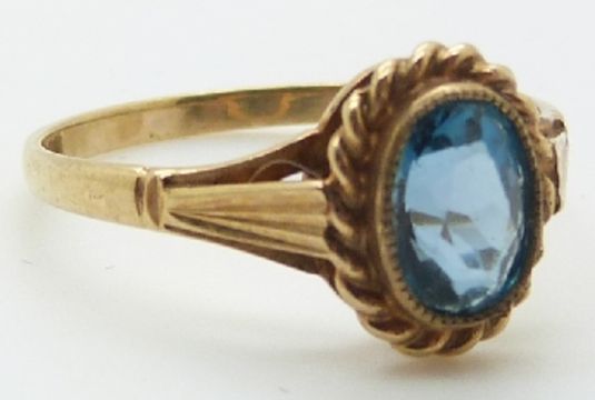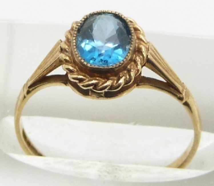 A 9ct gold ring set with an oval cut topaz, 1.4g, size L
