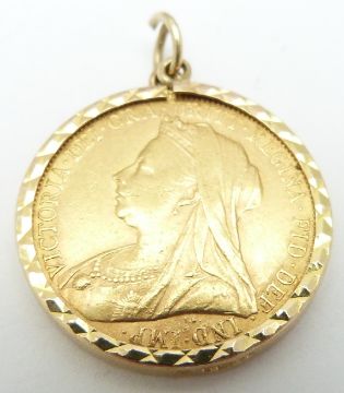 A 1901 gold full sovereign in 9ct gold mount, 8.85g