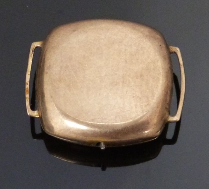 Unnamed 9ct gold wristwatch with blued hands, silver Arabic numerals, silver dial and 15 jewel movement, case diameter 22mm, serial number 4805, 8.9g