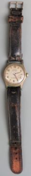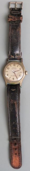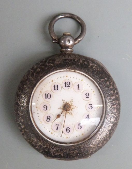 Orfina gentleman's wristwatch with luminous hands, white centre seconds hand and silver dial together with a continental silver pocket watch with gilt decorated pink and white enamel dial and engraved case.
