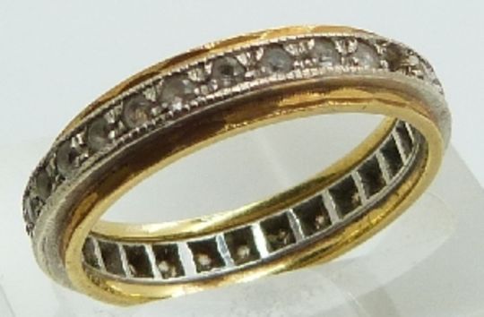 An 18ct gold eternity ring set with paste, size O, 4.1g.