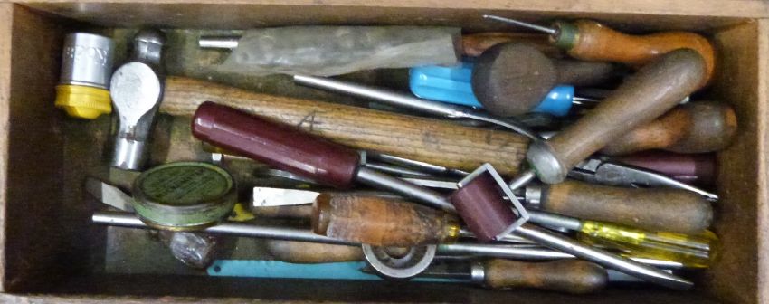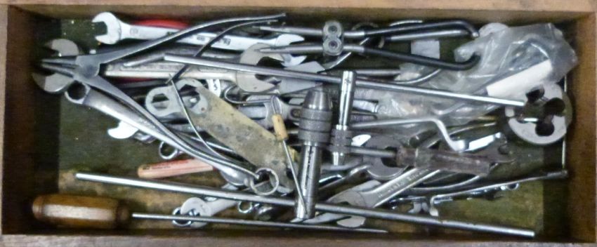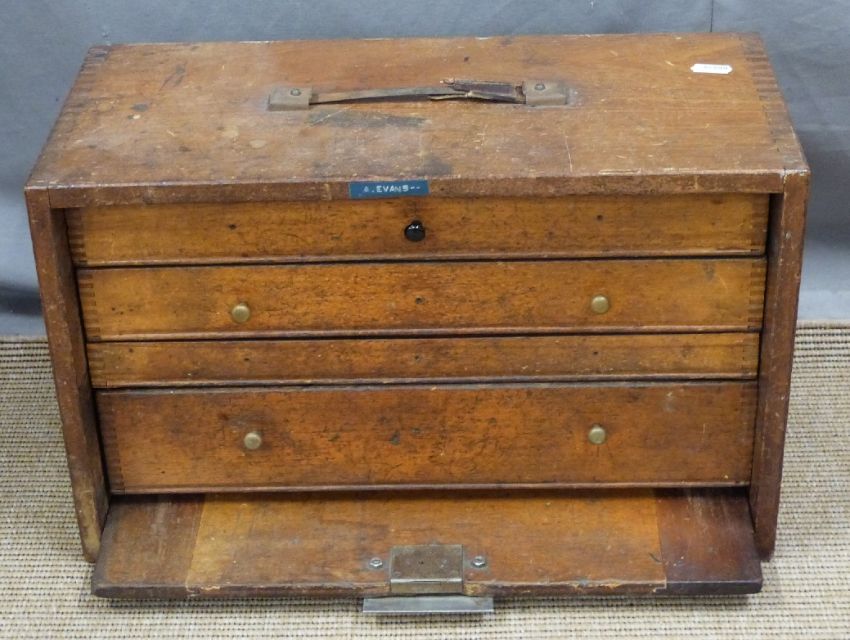 Toolmaker's chest of four drawers with contents to include micrometers, taps and dies, reamers, drills etc, width of chest 46cm