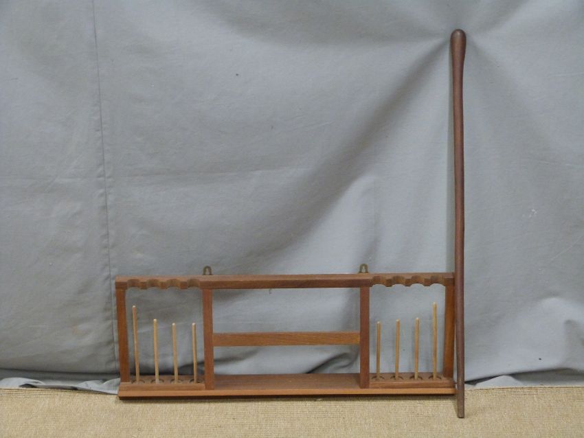 Hardwood walking stick and a hardwood embroidery or similar stand