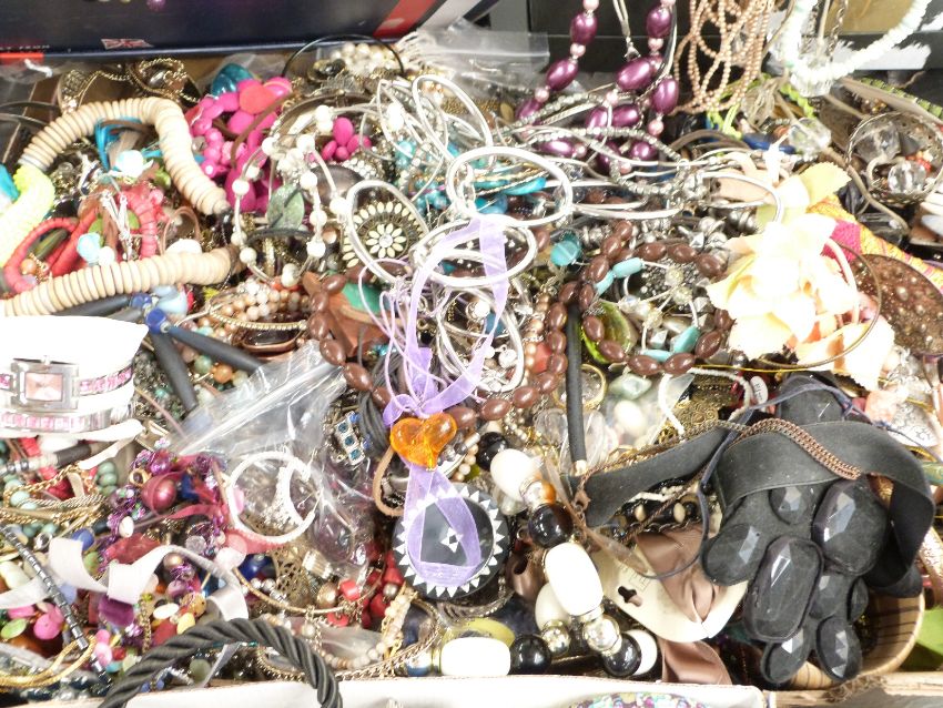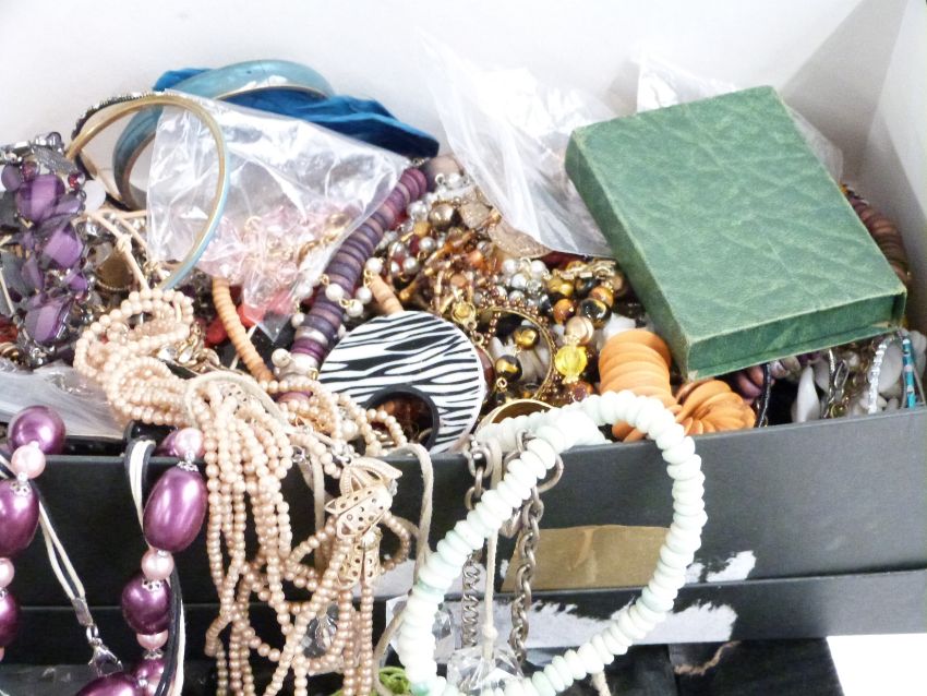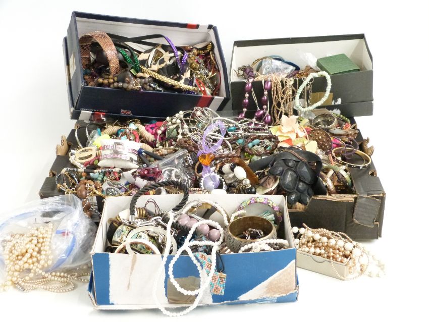 A collection of costume jewellery including beads, earrings, faux pearls etc
