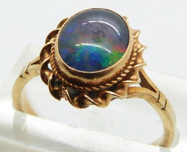 Two 9ct gold rings, one set with an opal doublet and the other an opal triplet, 3.9g